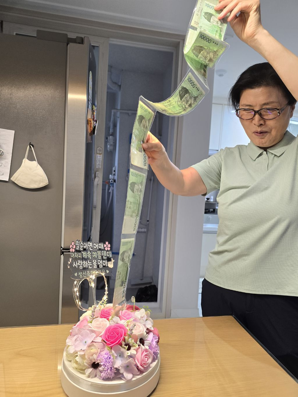 칠순 글과 돈이 연결되어 나오는 모습은 정말로 기찬 발상입니다. 딸의 솜씨였지요.